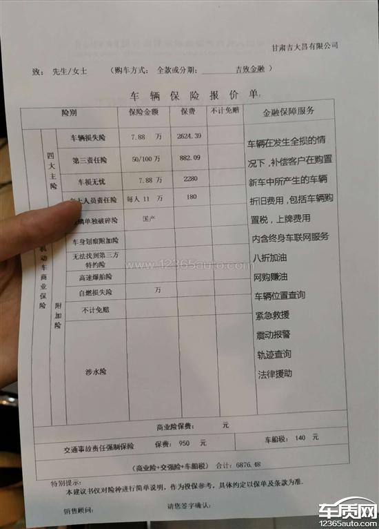 吉利帝豪GS经销商强制客户购买车损无忧险,欺诈消费者!