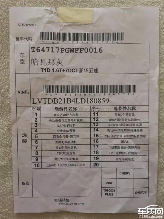 投诉编号:【541018】 投诉时间:2020-11-07 16:15 投诉品牌:奇瑞汽车 投诉车系:瑞虎8 PLUS 投诉车型:2021款 290TGDI DCT 豪耀版