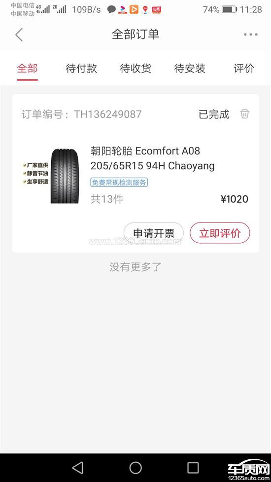 2020.11.5在途虎养车买四条朝阳轮胎,安装后发现凸陷,开裂,脱胶。连系途虎售后说轮胎没有问题,要求退货退款!不给退!
