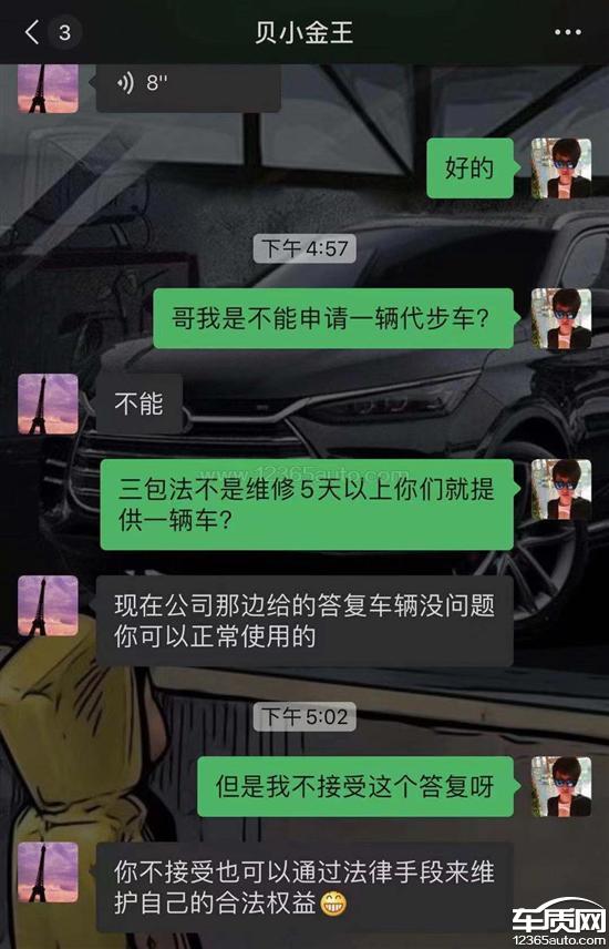 在今年11月22号的时候发现车辆在5挡的时候加速不走发动机异响油门踏板震动,车辆顿挫。找当地4S店维修,他们经理当时给我的答复就说正常现象,在我当天投诉完之后说看视频确实是有问题,之后在12月1号让我把车开过去维修,到12月2号的时候说电脑给车辆学习一下,结果学习完之后还是那样,技术经理还跟我说正常现象不予维修,我说正常现象的话别的车主说没有这问题怎么我就有,根据三包法厂家要提供一辆车,但是他们不提供,还让我尽快把车开走,我说车没修好我为什么要开走,他说那就走法律吧。