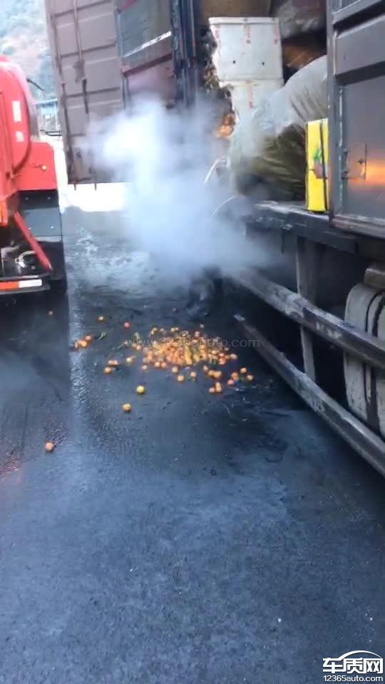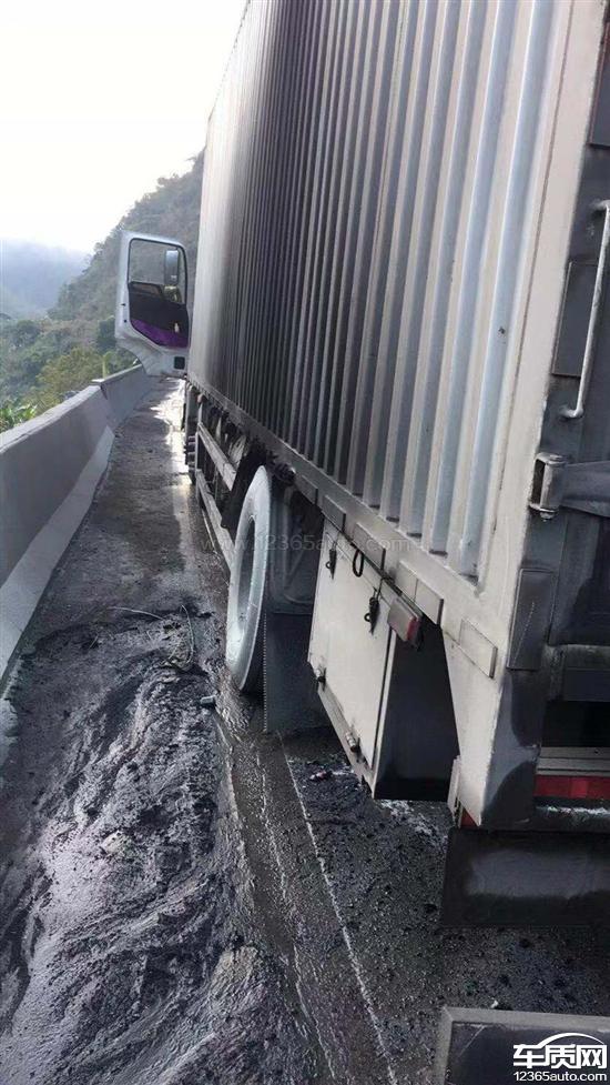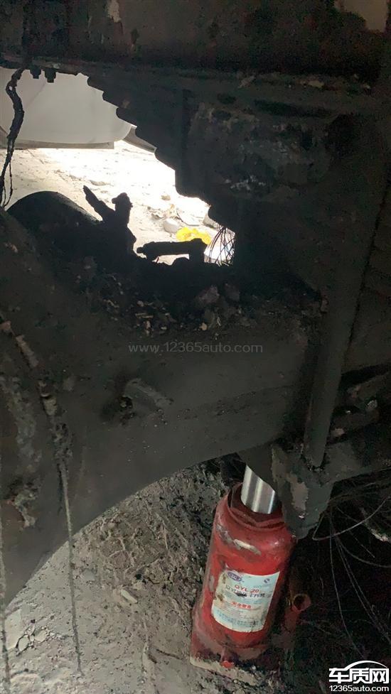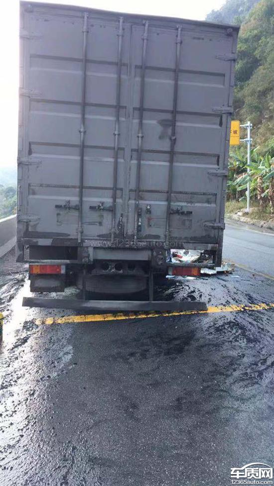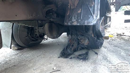 只有一边轮胎起火,刹车鼓温度是正常的,距离事发地。