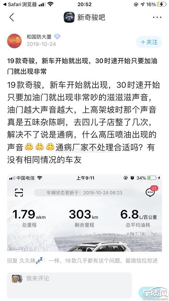 东风日产奇骏启动出现黑烟 音响有杂音2020-12-14车型:2019款 2.0L CVT 智联舒适版 5座 2WD