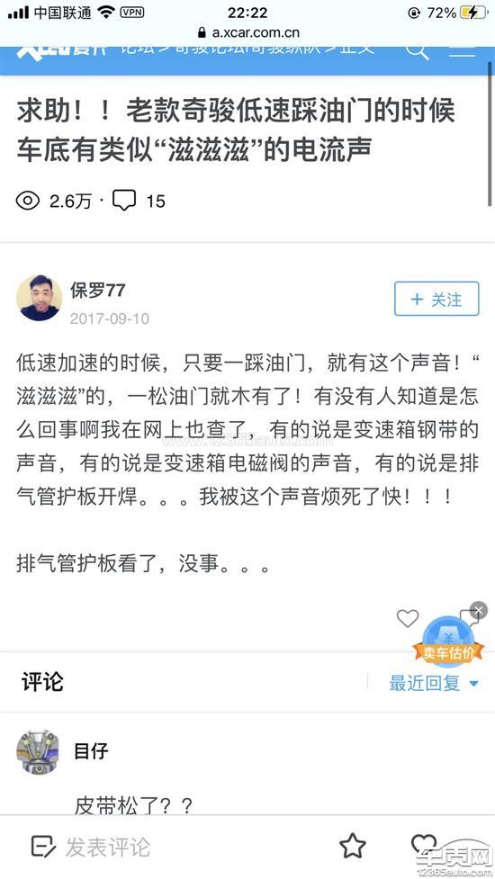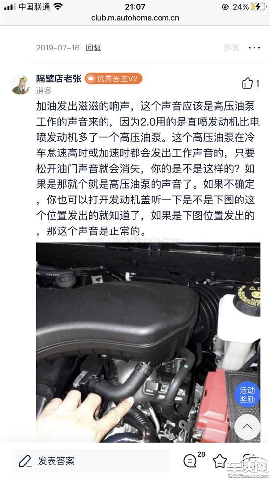20时速开始,只要踩油门,就出现滋滋声,60时速时声音最大,上坡时声音也很大,但是下坡踩油门时会好点,冷车刚启动时没滋滋滋声,启动十分钟后车热起来就会有。去了两家4S店都看不出来问题在哪,百度后发现此种问题也有人反映。