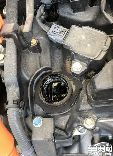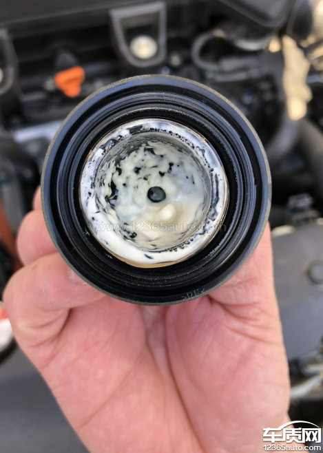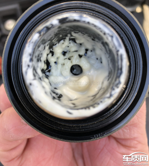 发动机机油乳化,并且机油盖有水,机油尺拔出后可看到乳化。