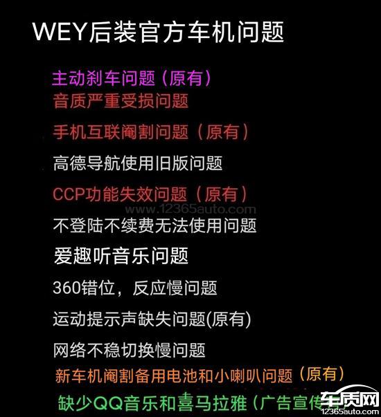 关于WEY道APP商城销售的车机升级套餐存在欺骗消费者行为的投诉,主要问题如下:一、商品信息及升级风险未公示二、产品功能存在严重缺陷此次投诉的主要问题就是Tbox不配备电池的问题,这在紧急情况发生的时候是个非常危险的事情,厂商的客服人员却推诿拖延,不给个明确的答复。三、服务流程不规范,服务态度恶劣:对于用户提出的诉求,没有及时公布任何积极应对的解决措施,只有一个字“拖”,以不变应万变,承诺的升级推送一拖再拖,毫无企业诚信可言。对于车机问题,客服永远都是向上反馈,永远都是没结果,最有效的答复就是“重启”车机,你是卖汽车的又不是开网吧的,怎么上不了网就重启?如果在高速上开车也重启吗?