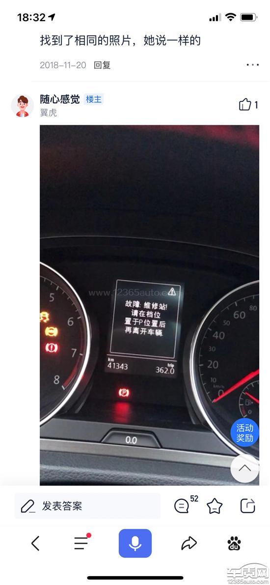 2019年下半年至2020年12月10日开始偶发性的出现一个故障提示,一闪而过那种,只能看清故障,挂P挡,一年来出现了10次左右(后来在网上搜索到该故障的图片),但是没有影响驾驶,所以也没在意。从2020年12月15忽然跳出了故障,变速器问题,之后开始连续出现了4次挂p挡故障提示。跟汽车维修的朋友问了下说是高尔夫7那一批次的通病,车辆这种问题都不召回维修的吗?4S店还继续忽悠客户说加装微动开关就好了,车辆本身的问题没做好,真够坑人的。