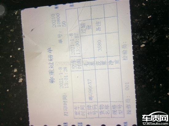 车实际重量与合格证上重量相差600公斤,车的实际过磅重量为3580kg,车铭牌和车合格证上只登记为2805kg。