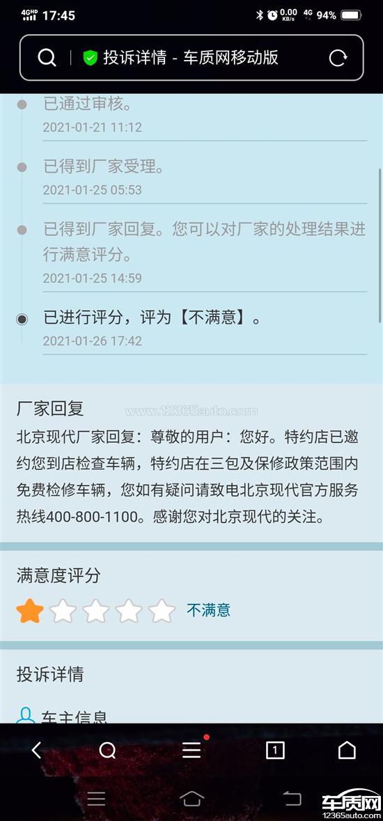 投诉编号:【568180】 投诉时间:2021-01-28 08:46 投诉品牌:北京现代 投诉车系:悦纳 投诉车型:2020款 1.4L 手动 GLS 炫酷版