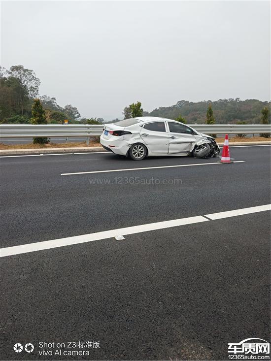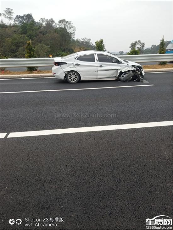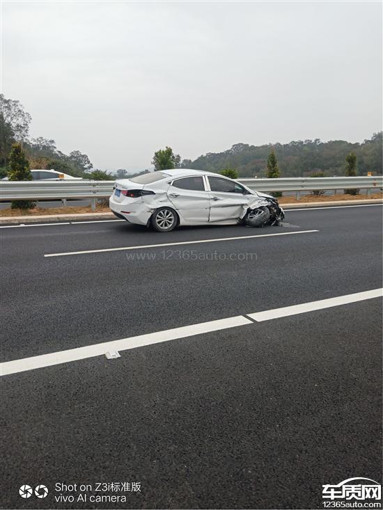 北京现代朗动右前轮带悬架撞掉了,轮毂刹车盘都撞烂了,气囊一个都没有弹出来。