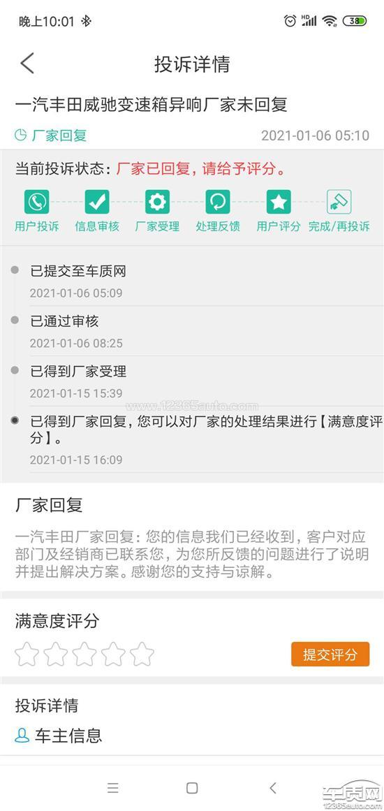 一汽丰田厂家回复:您的信息我们已经收到,客户对应部门及经销商已联系您,为您所反馈的问题说明了情况。感谢您的支持与谅解。