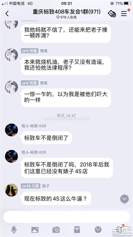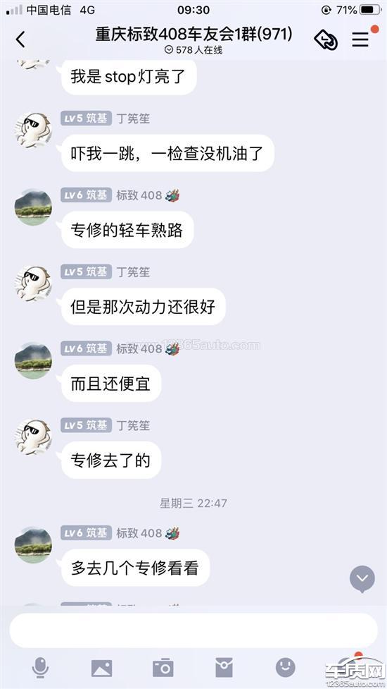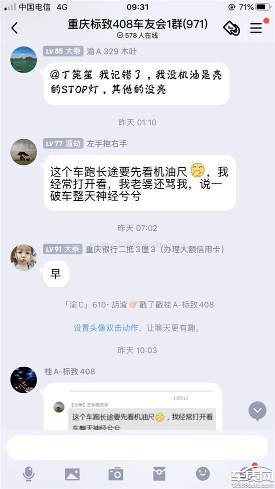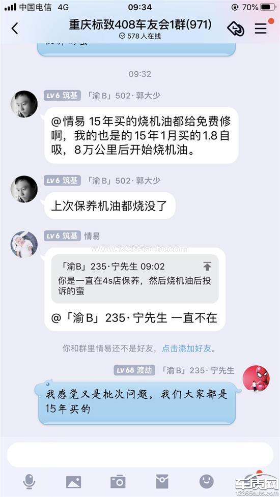 2020年10月29号做保养,旧机油抽出来只有2L不到,以前重来不烧机油,从首保就开始用道达尔9000 5W-30全合成机油.到现在一直都是用的这个机油,然后在群里一咨询,很多都是和我一样15年买的1.8排量的也烧机油,也是行驶了6到10万公里就开始烧,从10月换机油到现在行驶了6000多公里,上个月我已经把保养留下的那点全加进去了,现在油标尺已经看不到机油了,上次油箱质量问题在不知情的情况下就已经自费更换了,后面的车友都是免费更换的,所以,本次烧机油的问题希望厂家能够处理,别让中国标致用户寒心