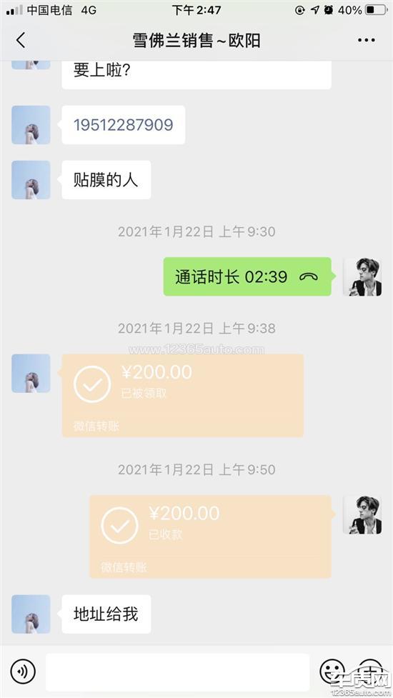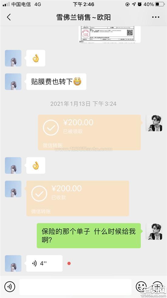 购车前承诺送汽车玻璃贴膜和行车记录仪,交完定金之后又给我说要收200元的贴膜费用,我也忍了,给转了200元,但是迟迟没有收到通知什么时间去贴膜,最后我电话咨询销售,销售给我理由很简单意思是快过年了比较忙,排队多。我想说的是不管你们忙不忙,最起码应该给我个通知大概什么时间也可以呀,最后我还是让销售把贴膜的钱退给我了。第一点,承诺客户送贴膜,变相收取贴膜费,这不是套路吗?更气的是贴膜费我也给了,关键我从给了贴膜费之后等了好久要不是我打电话咨询估计就没有下文了,典型的收了钱还不办事,拿我们买车的当傻子了。第二点,答应送行车记录仪,现在过去60多天了,二月底我再次电话销售行车记录仪的事情,答应我当天就快递给我,现在行车记录仪的事情也没下文了。第三点投诉这家店和我对接的销售服务态度不好,反正我是以后再买车永远不会去这家店了。