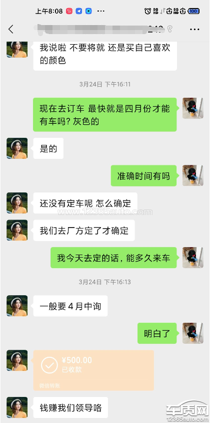 原本计划购车,咨询4s店价格,对方让交500元购车意向金,后期因为家里原因需要用钱,暂时不打算买车了。想要4s店退还该意向金。店里很明确表示不给退。