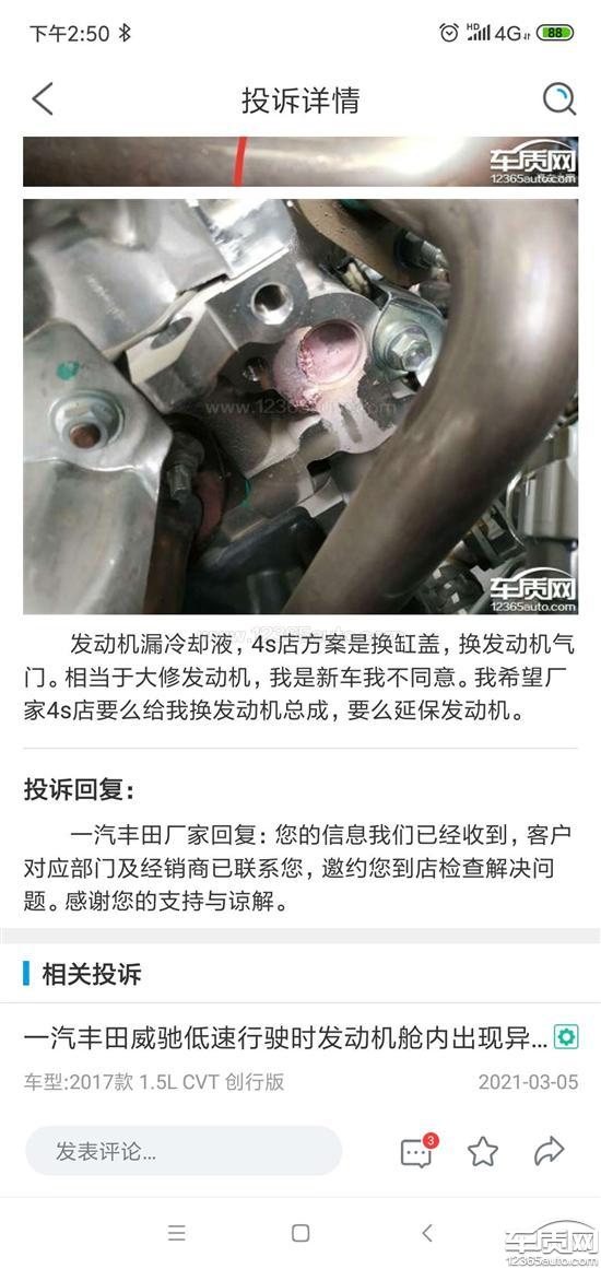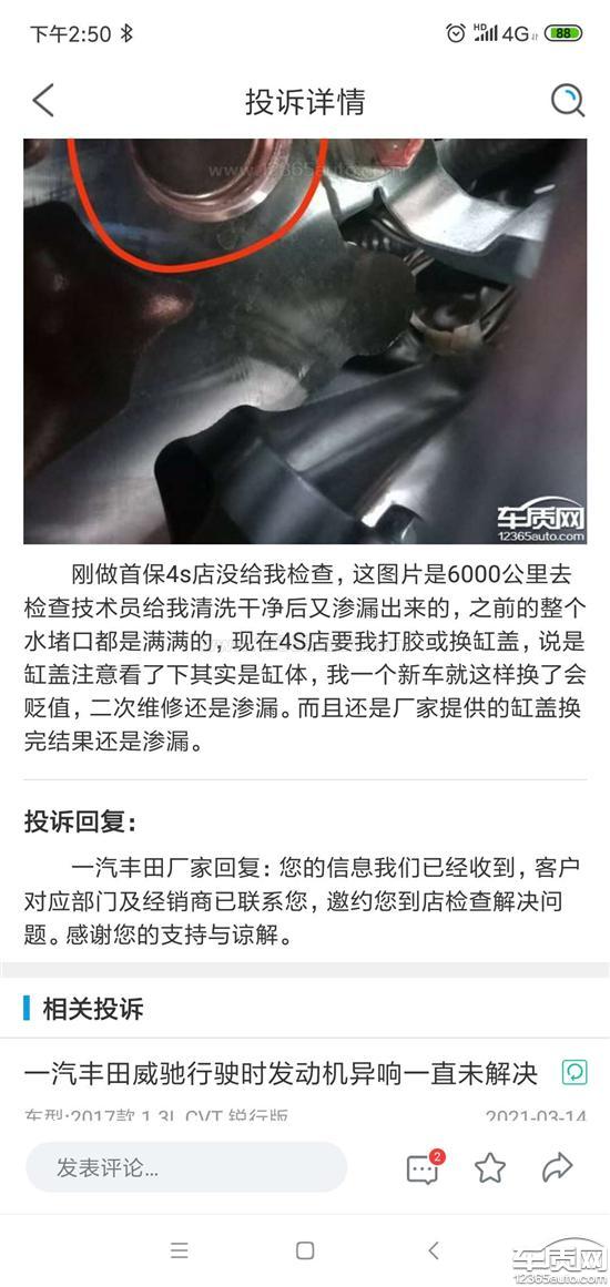 一汽丰田厂家回复:您的信息我们已经收到,客户对应部门及经销商已联系您,为您所反馈的问题说明了情况。感谢您的支持与谅解。