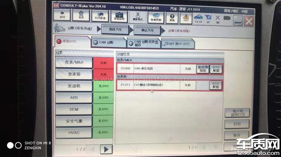在4S店保养检测出CVT颤动(控制阀检测)错误代码为P17F1,仪表盘无任何提示只有4S用电脑才能检查出来目前无法消除故障代码,希望厂家能够解决此问题。