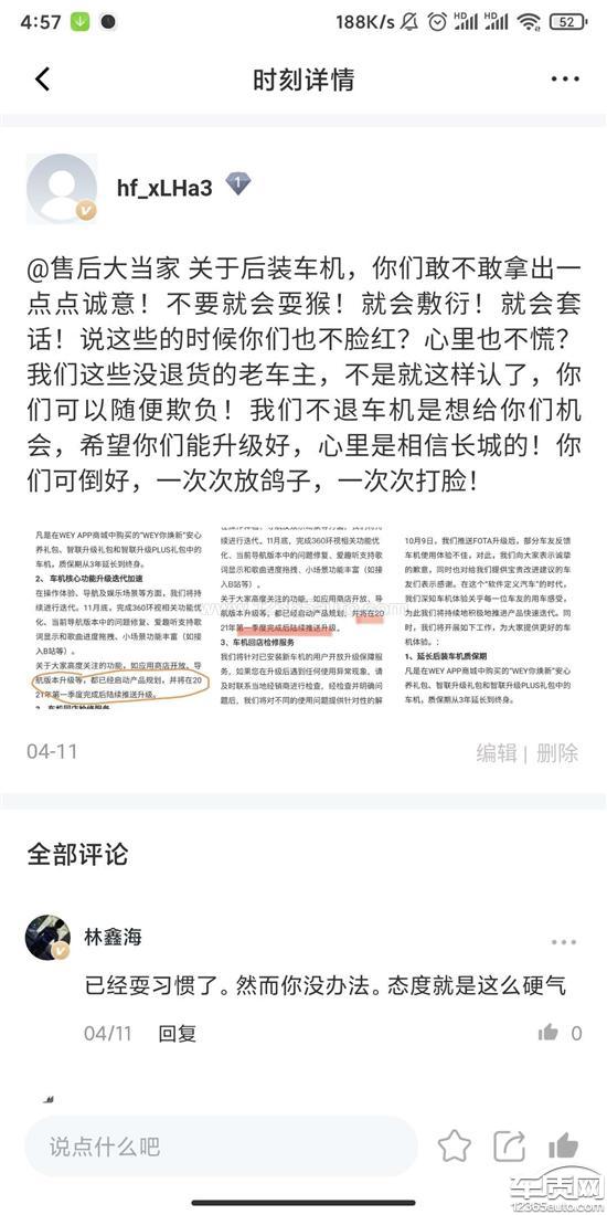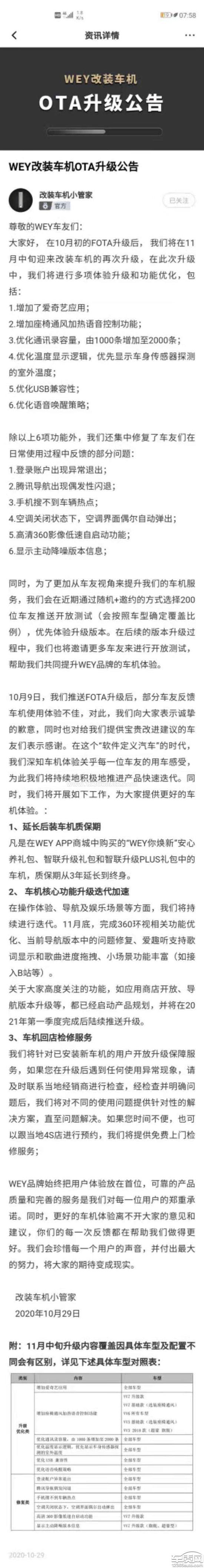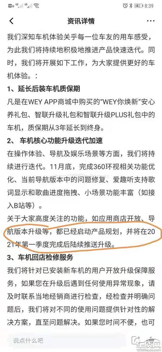 WEY VV6厂家加装车机功能缺失升级未解决2021-05-04车型:2018款 2.0T 两驱 超豪型 国V