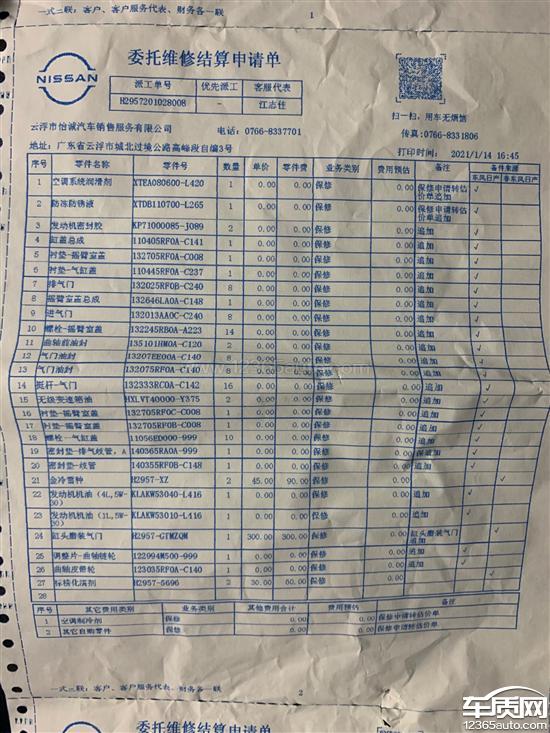 日产劲客经销商赠送保养机油标准不一致2021-03-17车型:2021款 1.5L XL CVT 酷享版