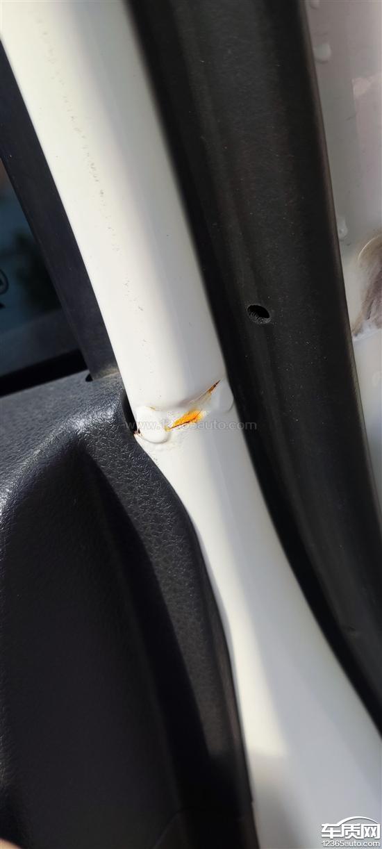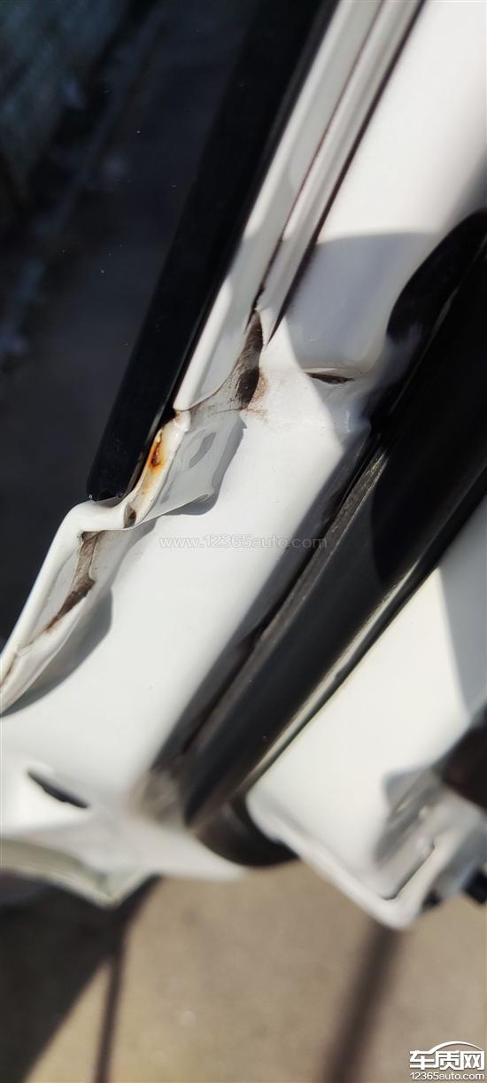 四个车门的车门架连接点有不同程度生锈的现象,主驾驶侧车门漆面生锈了,前挡风玻璃顶部漆面掉漆。