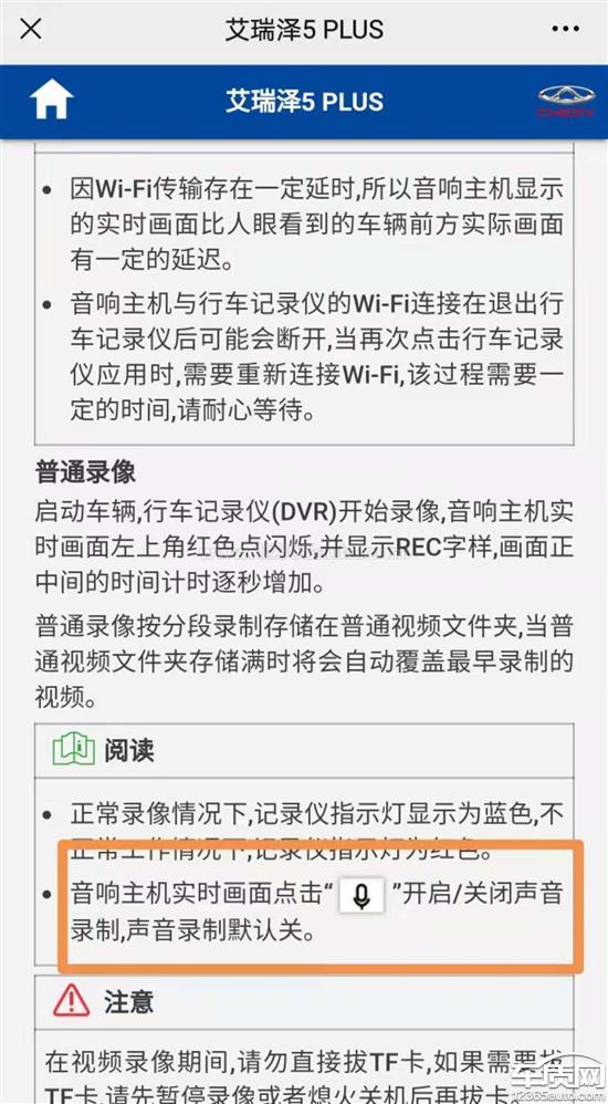 ①如视频所示,原厂自带的行车记录仪无法进行声音录制,将此问题反馈给奇瑞厂家,4008838888厂家反馈二月份后因为涉及用户隐私的问题,取消了声音录制功能。表示很难认可这种说法,本身声音录制是默认关闭的,用户自己可以选择开启与关闭,那又何来涉及用户隐私呢。②行车记录仪已调节成最高1080P,依旧是不够清晰的,难以看清三四米开外的车牌号,特别是晚上的清晰度更是堪忧,如果行车记录仪连周边的车牌号都看不清,那又意义何在呢。③车子刚发布时候的行车记录仪我们车友有过对比,声音录制功能是正常的,而且录像的录制相比现在而言也足够清晰,这很难让人不联想到“减配”这种行为,希望厂家正视这个问题,不要因为这种问题失去消费者的信任。行车记录仪影像及音频的正常录制,对车主行车的权益有极大的保障作用,希望厂家能真切的解决这个问题。