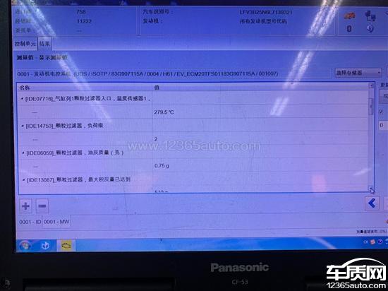 新车行驶4000公里,颗粒捕捉器堵塞3次,检测结果为2级,油耗异常升高为20l,自动启停系统失效未能启动,变速箱顿挫严重。