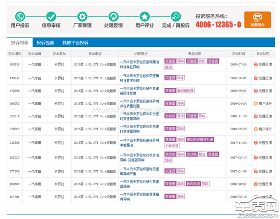 投诉编号:【605967】 投诉时间:2021-06-09 18:23 投诉品牌:一汽丰田 投诉车系:卡罗拉 投诉车型:2014款 1.6L CVT GL-i真皮版
