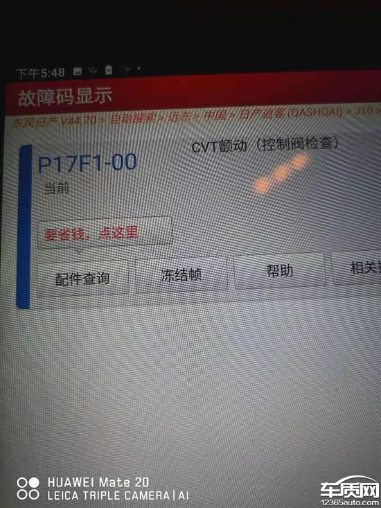 东风日产逍客变速箱控制阀故障导致发动机亮灯,顿挫感明显,加速无力,怠速不稳。