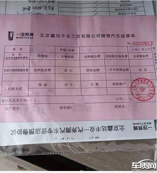 投诉编号:【612693】 投诉时间:2021-06-29 09:39 投诉品牌:一汽奔腾 投诉车系:奔腾T99 投诉车型:2020款 20TD 自动 旗舰型