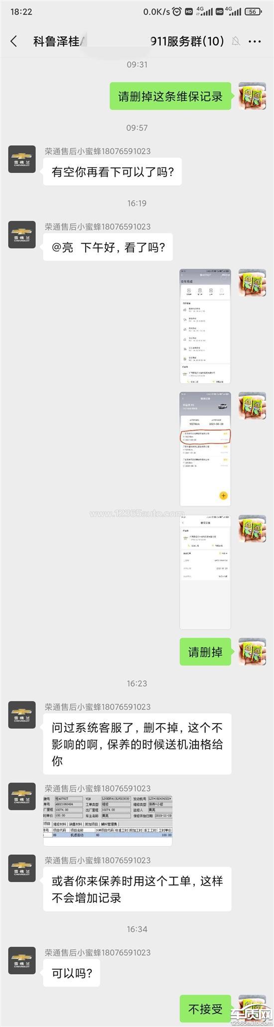 2021年6月28日晚上下班回到家发现车辆APP上面收到自己的车已经进入4S店维修保养了,检测单上面显示润滑车门铰链异响,建议维修或更换(后来第三天也就是30日把这个故障记录去掉了,显示正常了)。打电话给4S店确认,他说先留信息第二天帮我确认,第二天打电话给我说什么系统在升级维护什么的导致了出现这样的情况,让我截图下次来保养的时候可以打折给优惠,我肯定不相信啊。然后我就打电话给上汽通用客服反馈问题,希望他们联系4S店帮我把记录删掉。但是4S店来电说是他们误操作了,记录删不了问我能不能给我保养优惠来解决,我拒绝了强调要帮我删掉这个莫须有的维修保养记录。然后微信群他们就有人联系我说删不了,保养给我送机油。我不同意,莫名其妙给我增加了维修保养记录,对我卖车什么的方面都有影响,不是简单的送个机油什么的就这样让它永远有个记录在这里。而且这个事情一直影响着我的心情。他们这样操作不但损害了消费者的利益,还有向厂家骗保的嫌疑。然后她就问我该怎么处理。我想了很久,她们可能真的删不了那就退一步,一次小保养两百多,补偿我两次小保养的费用,因为这个事情我真的不想去他们那个店保养了。他们拒绝了。我觉得我应该维权,维权如果没有得到重视我希望可以曝光他们这样的行为。所有车辆APP维保记录和聊天截图,还有通话录音都有保存。希望厂家能重视帮忙解决,如果得不到解决那就走程序。