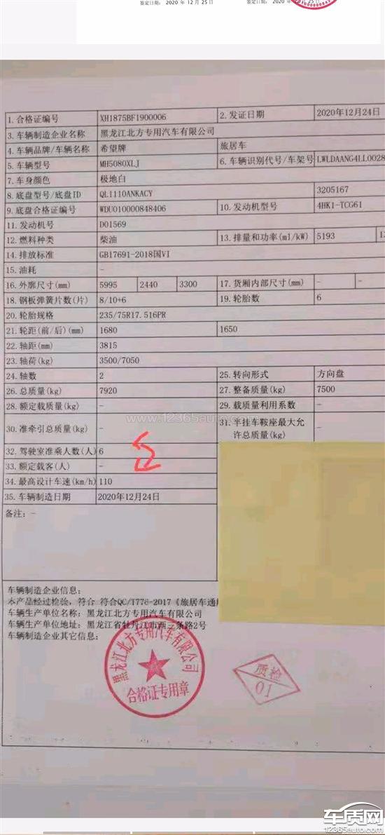 2020年12月25日从黑龙江枫林机械制造有限责任公司购得,由北方专用汽车有限公司生产的,希望牌MH5080XLJ旅居车两辆。于2021年3月在广东省东莞市上牌中,车管所民警告知,由黑龙江北方专用汽车有限公司出具的改装合格证存在两处开具错误(32项、33项)。错误处均为:第32项“驾驶室准乘人数(人)6”第33项“额定载客(人)-”正确的开具方式应为:第32项“驾驶室准乘人数(人)-”第33项“额定载客(人)6”。期间数次与该销售公司沟通要求更改(更换)合格证,均无果。无奈特此向相关部门反馈此情况,请给予解决问题,为盼。