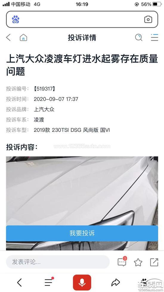 19款大众凌渡原厂大灯存在质量问题,不仅仅是我这一台,很多都有这样的情况,雾气,进水,车子从来没有碰过剐蹭。这款车的大灯都出现了同样的毛病,这就是通病,我想问下大众厂家,这样的质量还能在市场上出现然后再进行销售嘛?你让消费者如何来接受,让消费者自己买单嘛?如果得不到解决,我将曝光质量问题。