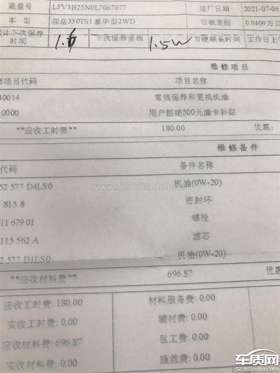 一汽大众探岳颗粒捕捉器堵塞油耗增高2021-07-06车型:2020款 330TSI 两驱 豪华智联版