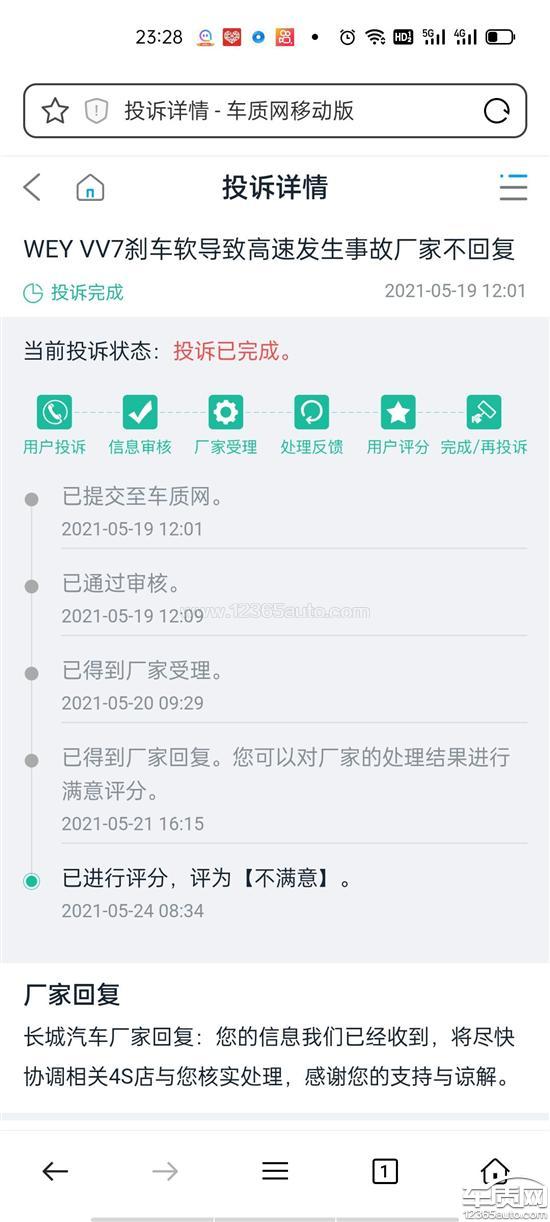 投诉编号:【616489】 投诉时间:2021-07-08 17:17 投诉品牌:长城汽车 投诉车系:魏牌 VV7 投诉车型:2017款 VV7s 超豪型