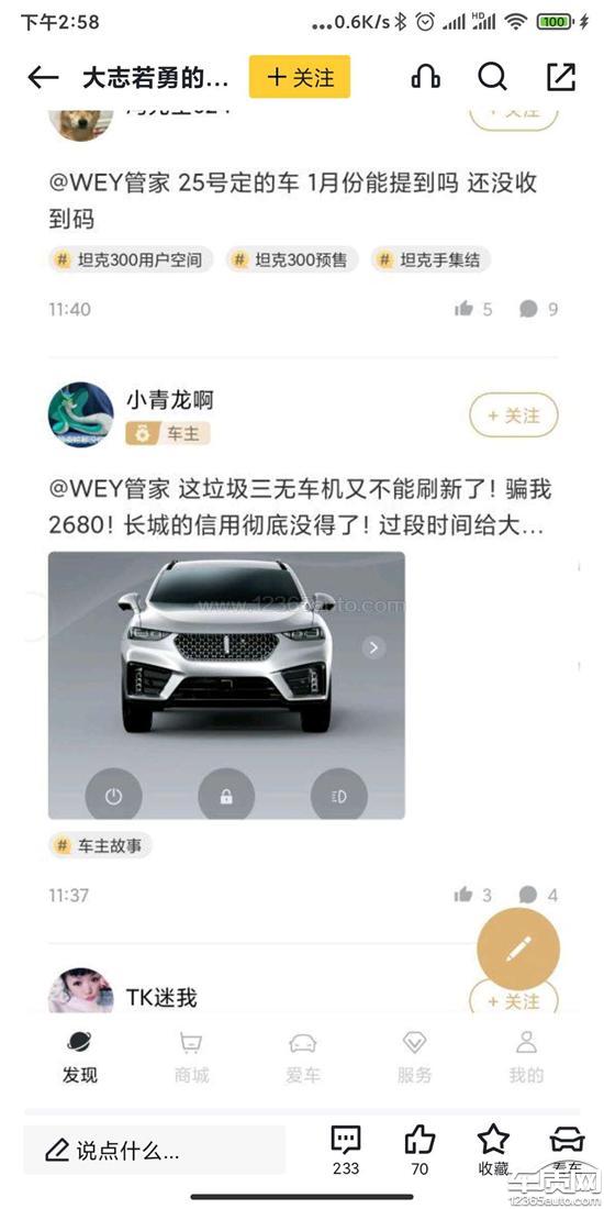 长城汽车厂家回复:您的信息我们已经收到,将尽快协调相关4S店与您核实处理,感谢您的支持与谅解。如果您对授权销售服务商的解决方案有异议,可以致电长城汽车客户服务热线400-666-1990进行反馈。