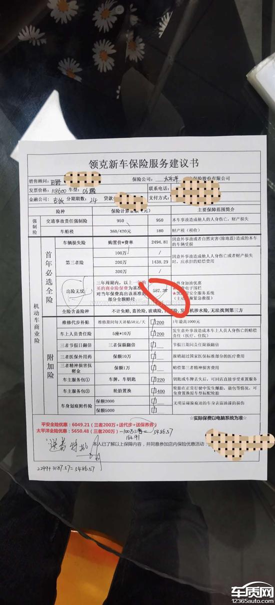 购车强制购买凯励程车损无忧险(后来才了解这根本不是什么保险,只是个服务和GPS定位!),当时在领克新车保险服务建议书上说车损无忧险只需要587.36,不购买无法提车,属于捆绑销售,购车前已经说好无捆绑销售,欺骗消费者,购车后说建了一销售群叫什么专属车主群,名字高大尚,我反映了那么多问题,群里面就说了一名话,稍等一下,后来有个人打电话说什么话很难听,什么白字黑字之类的话态度恶劣,服务极差,售后根本不处理问题。后来通知打电话了解来保险公司实际保险为3187.57元,而且交钱只分2批转出去的,一批为3187.57车险 另外一批为2299元,当时也没有多想 而且提车心切,正常的人谁为去购买那个2299元的定位服务,本来领克都有定位服务, 后给了另外一张单子盖有成都路行通信息技术有限公司的公章 钱都交了 所以就没有多想,回来后把单子找出来一对,就看出来了问题。现在都是法律社会怎么还有这样的企业处处为消费者挖坑呢。