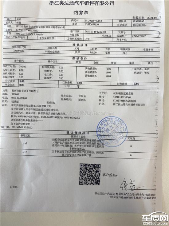 投诉编号:【620408】 投诉时间:2021-07-19 16:14 投诉品牌:一汽奥迪 投诉车系:奥迪Q5L 投诉车型:2018款 40 TFSI 荣享进取型 国VI