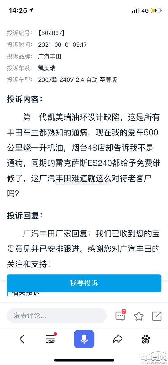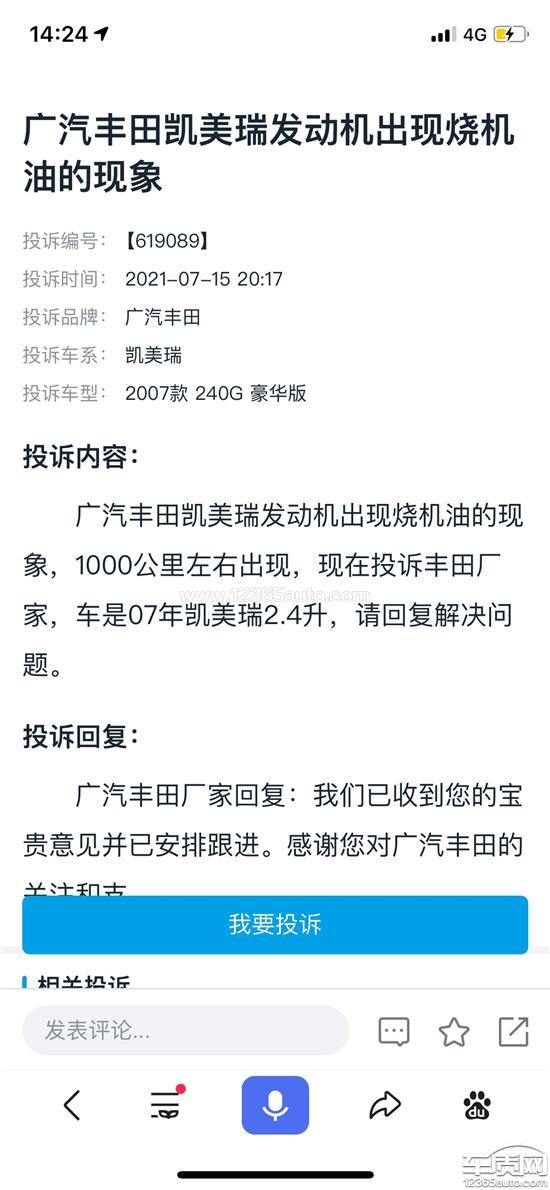 投诉编号:【624104】 投诉时间:2021-07-28 18:39 投诉品牌:广汽丰田 投诉车系:凯美瑞 投诉车型:2007款 240G 豪华版