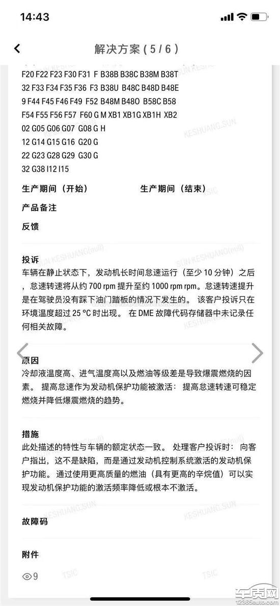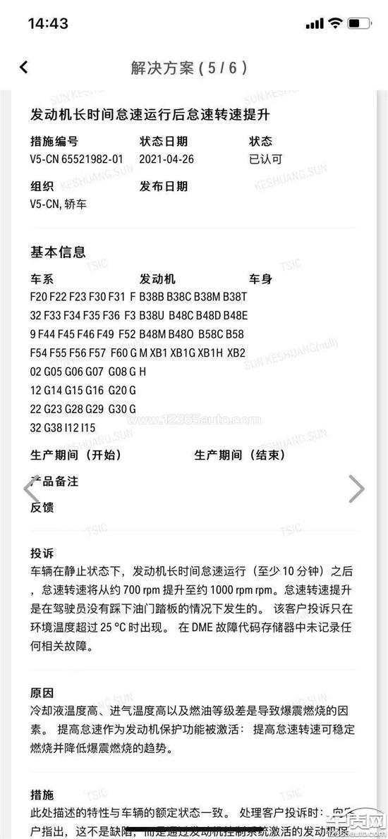 还是老问题,热车怠速自动升高到1000转,随后发生窜车,换挡延迟等一系列连锁故障。4月份厂家出了一个内部文件(见下图)。我们也按要求加了98号的燃油,问题依然存在。今年已经进去夏天,各大群里发动机怠速高的车也越来越多,全部集中在20款21款中的2.0车辆上。去年也跟当地4s店试驾车做过对比测试,试驾车完全没有问题。8月初,我找了一个可靠修理店拆除了gpf,怠速依旧1000转,这个很明显的就是发动机制造缺陷了。所以我们得出结论,还是只有其中一部分车有这个问题,大多数车辆正常。现在希望宝马出面对此问题做出解释。
