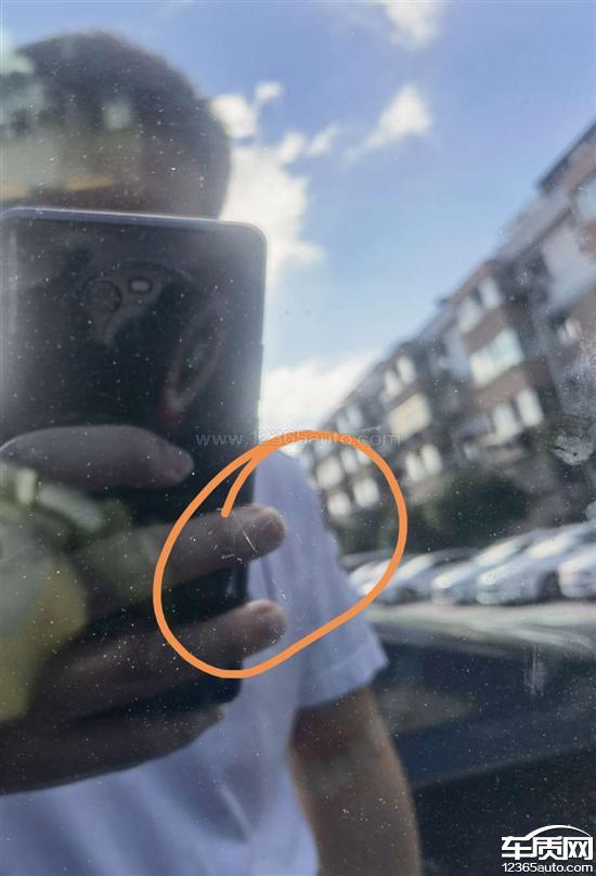 发现左后窗玻璃有两条3公分左右的裂痕。完全没有任何碰撞痕迹或者敲击痕迹,不是外力造成的!