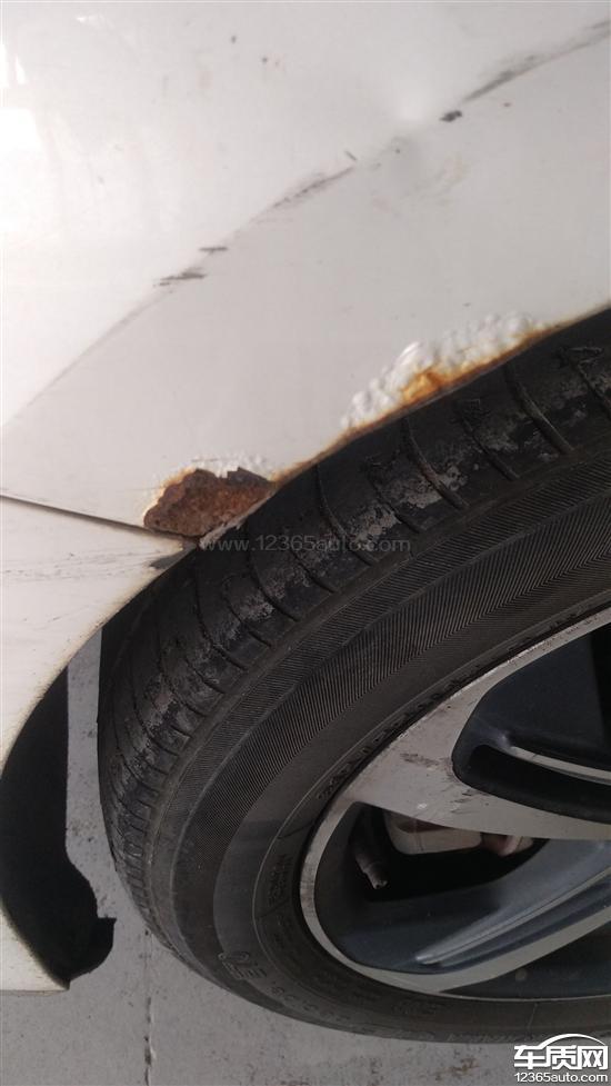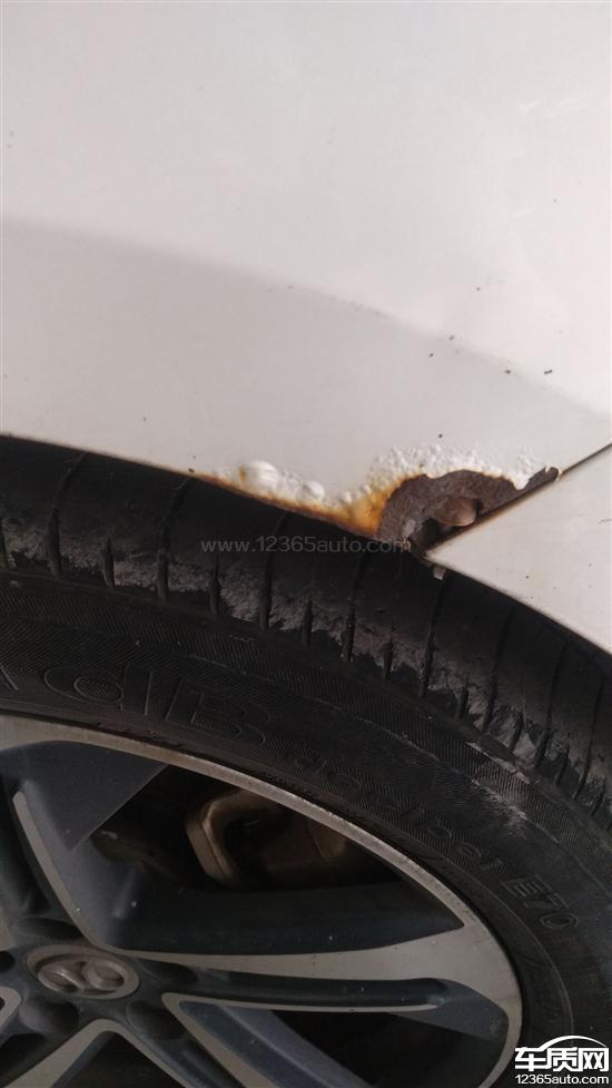 现在需要投诉处理的是车前轮上方两侧外壳生锈问题,大约在一年前已发现右上方外壳有个小位置油漆起泡了,当时以为是油漆的问题没在意,后来油漆掉落了之后才发现内面铁板都生锈,通了洞。两侧外壳也陆陆续续生锈,望平台和厂家快点回复和外理。