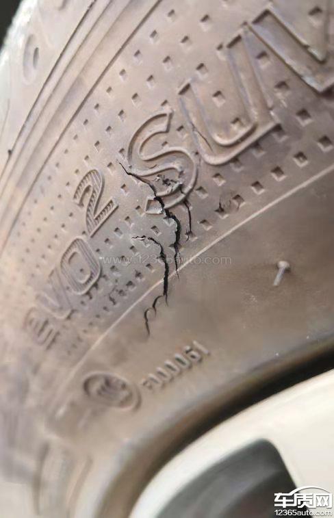 2020年8月份提的车,到现在才行驶了9600公里,洗车的时候无意间发现轮胎侧面严重开裂,主要部位如图所示,裂纹在左前轮与左后轮,平时开车比较小心,可以确认非人为引起的,如果在高速上发生爆胎后果很可怕,轮胎出现质量问题不是小事,出了问题就是大事,要求厂家尽快解决。希望厂家免费更换轮胎。