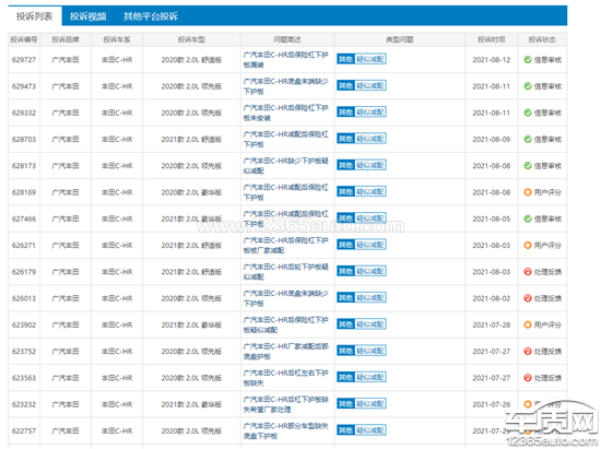 投诉编号:【632134】 投诉时间:2021-08-18 15:16 投诉品牌:广汽丰田 投诉车系:丰田C-HR 投诉车型:2020款 2.0L 舒适版