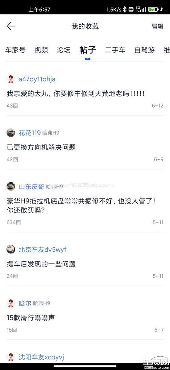 车是2020年10月底订的车,2020年12月5号提的车,到目前提车已经9个月,提车后后一两百公里,在高速上面开继续巡航,发现右侧有类似呜呜的声音,开始留意。经过一段时间的观察,发现在那个80~95之间都有这样的问题。现在发展成为80~100之间,无论是加油还是松油门都有这个声音。其中加油的时候前面响为主,松油门的时候就是后面响为主。走售后经过:1.自从发现问题后,就一直留意,在首保时候提出这个问题,也去过4S店,然后说给我反馈上去,但是一直都没有解决方案期间。2.20210102首保后也多次在哈弗智家,哈弗车友会,网上跟类似问题车主做过一些帖子互动,发现同期提车的车主很多反映这样的问题,期间也一直催促4S店处理,都在说要等厂家出方案,期间也多次致电长城客服,每次都推给4S店,4s店这边就说等长城出方案,互相踢皮球。3.20210509车更换涡轮的时候,底盘上述声音已经严重影响驾驶舒适,再次强烈反馈问题。4.在又经过长达三个多月的长城客服,4S店的沟通联系,终于有4S店回复说,厂家技术需要进行行车视频取证,也去4S店在售后陪同下试车,手机录制,然后发送给厂家技术,光试车都试了两个小时,厂家技术才收货。5.将近一个月,20210823日售后回复我说厂家技术回复是正常声音小。我当然不接受这样的回复,因为行驶时候各种声音都有,靠一个手机录制很难记录。6.现在要求厂家派技术人员现场试车,或者车主与厂家共同委派共同认可的第三方检测机构对我车进行鉴定,而不是在4S店无能力诊断问题所在,出具方案的时候,还高坐空调房。一直关注类似问题,这个问题不是一个两个车的问题,是一批车的问题,哈弗h9作为长城的哈弗旗舰车型,让曾经的哈弗H6车主还是很向往,技术人员没有技术,售后客服只会忽悠。