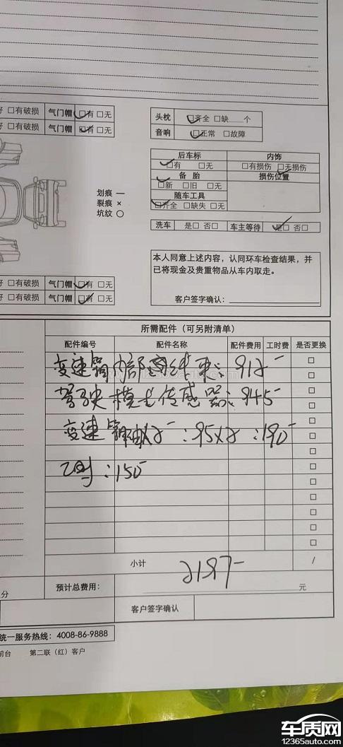 我于2018年3月在4S店买的2018款自动向上版,到现在2021年9月21号已经脱保几个月跑了5.2万公里,在之前的驾驶中也出现好几次变速器故障、是那种一闪而过的、去店里检查也没检查出故障、这段时间也出现过早启动车后出现变速器故障和自动驻车故障、加速不走车、D档只能退到N档退不进R档和P档、熄火过一会重新启动后加速无力、过一会恢复正常。昨天车辆在国道行驶过程仪表中出现变速箱故障!自动驻车故障。踩油门踏板不管用,车只能滑行前进。后到十字路口停车后踩加速踏板就完全不管用了,转速最多上到2200转,车速为零车子不动。随后联系售后服务站和电话沟通后拍视频给师傅,当时师傅们不在车跟前也不好判断是什么故障引起。后熄火在启动还是那样再熄火启动后车子能动了!加速无力就是踩油门就是跑起来几迈的情况,过了一会又好了我开到路边继续和售后师傅沟通联系、师傅说只能等到故障再出现他们开车来检查,所以我们就打算往服务站那边开什么时候出现故障后随时联系售后、快到服务站的时候又出现此故障赶紧停到路边联系师傅、师傅开车来检查后说让我们把车开回服务站、去了之后就是检查到驾驶模式传感器单线故障、要求更换此传感器和变速箱线束。价格高达2197元!而且还不能完全保证就是这两个配件出现的故障、质保刚过就发生这样的质量问题,真的寒心。怎么支持国产