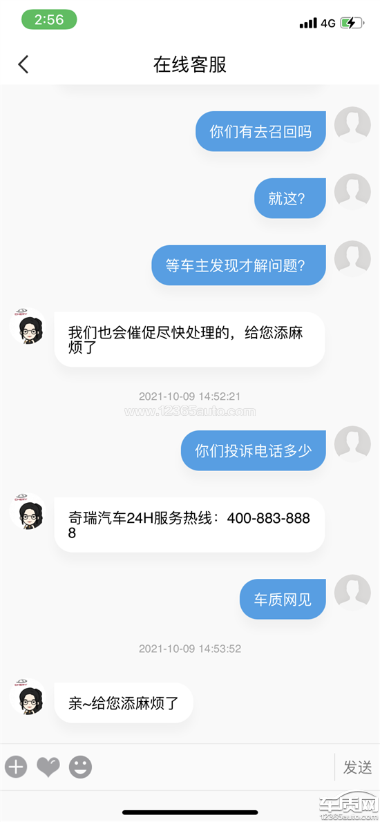 投诉编号:【651903】 投诉时间:2021-10-09 15:12 投诉品牌:奇瑞汽车 投诉车系:瑞虎8 PLUS 投诉车型:2021款 290TGDI DCT 豪情版