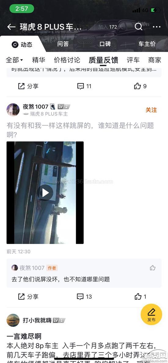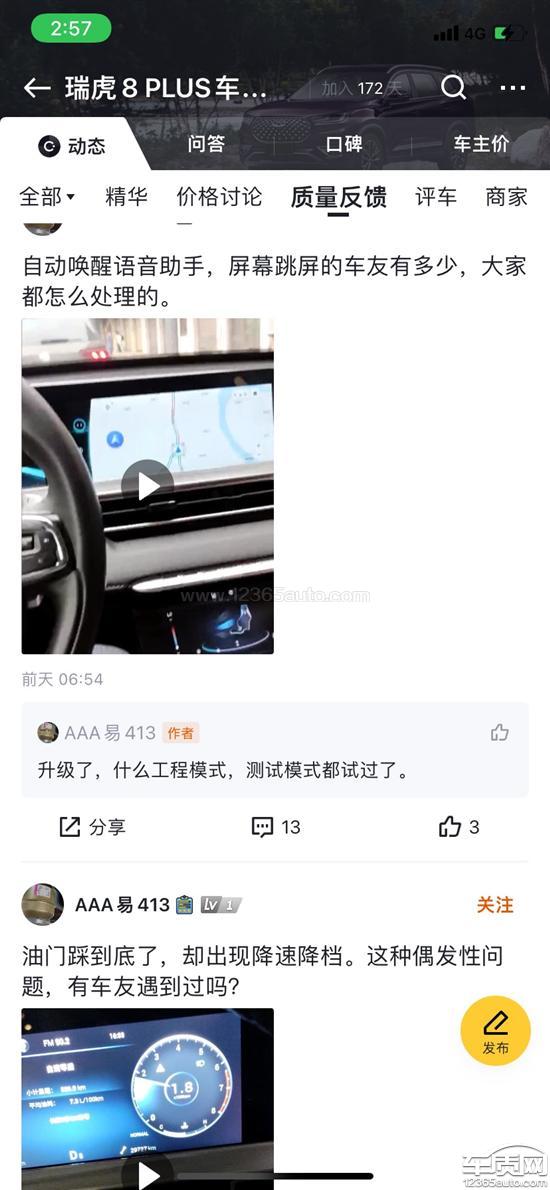 图片上的是其他车友的问题,然后我自己也是经常打开地图就会跳语音助手的空调面板。然后视频是我遇到的一个最大的一个故障,就是屏幕全部都点不动没有用,按键是有用的,屏幕是点不了的,说明屏幕都是有问题的。然后车友圈全部都是这种问题,去年11月份12月份的车,好多都是屏幕问题。4S店厂家从来没有发过召回通知。就必须要等到你车出了问题,发现问题才给你解决。然后我9月29号去4S店检测,申请索赔屏幕,到现在十多天了,没有收到更换的通知。把消费者当傻子。找厂家客服也是敷衍了事。