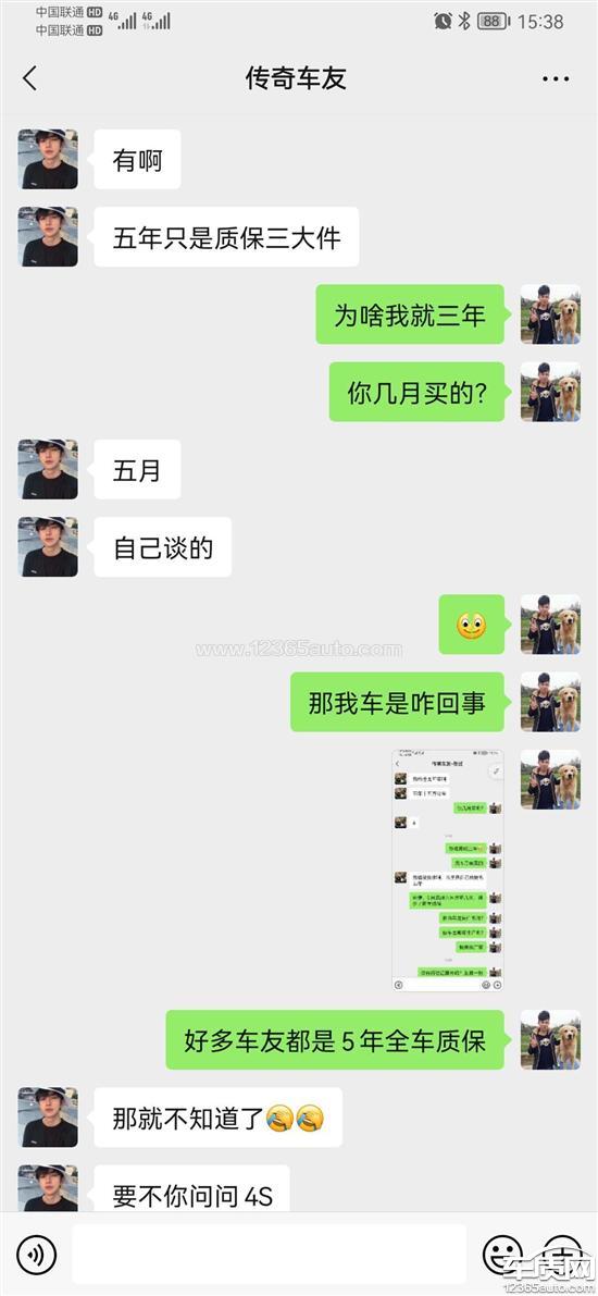 同样都是传祺车主,厂家不一视同仁,不平等对待看人下菜,同款车型同配置同年份购买,整车质保不一样。前几天无意间了解到别的车主竟然是5年15万公里超长质保,而我却只有3年10万公里质保,传祺车本来就小毛病不断,而我也是购买的国五清库存的车辆,多两年质保尤为重要,打厂家400无果解释含糊不清,请厂家赠送两年质保期!不要让支持自主品牌的车主寒心。