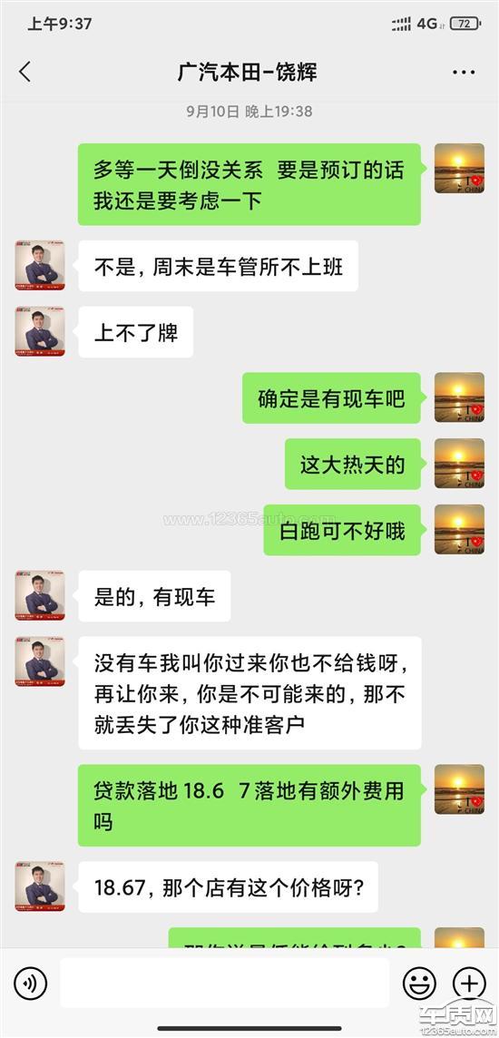 广汽本田皓影4S店不按约定时间交车2021-10-09车型:2021款 240TURBO CVT 两驱 智享版