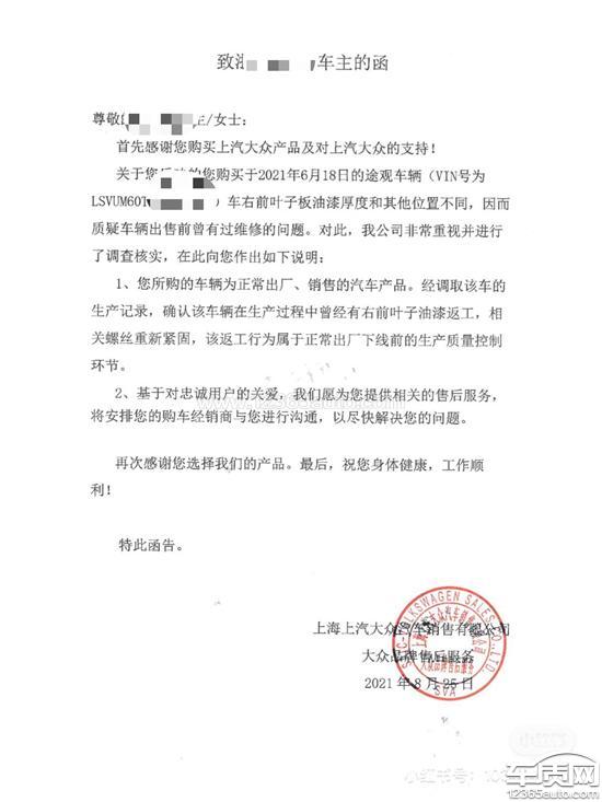 上汽大众厂家回复:关于客户的抱怨问题,我公司已安排对应经销商与客户进行沟通处理中,最终处理情况或处理结果将第一时间反馈贵网。