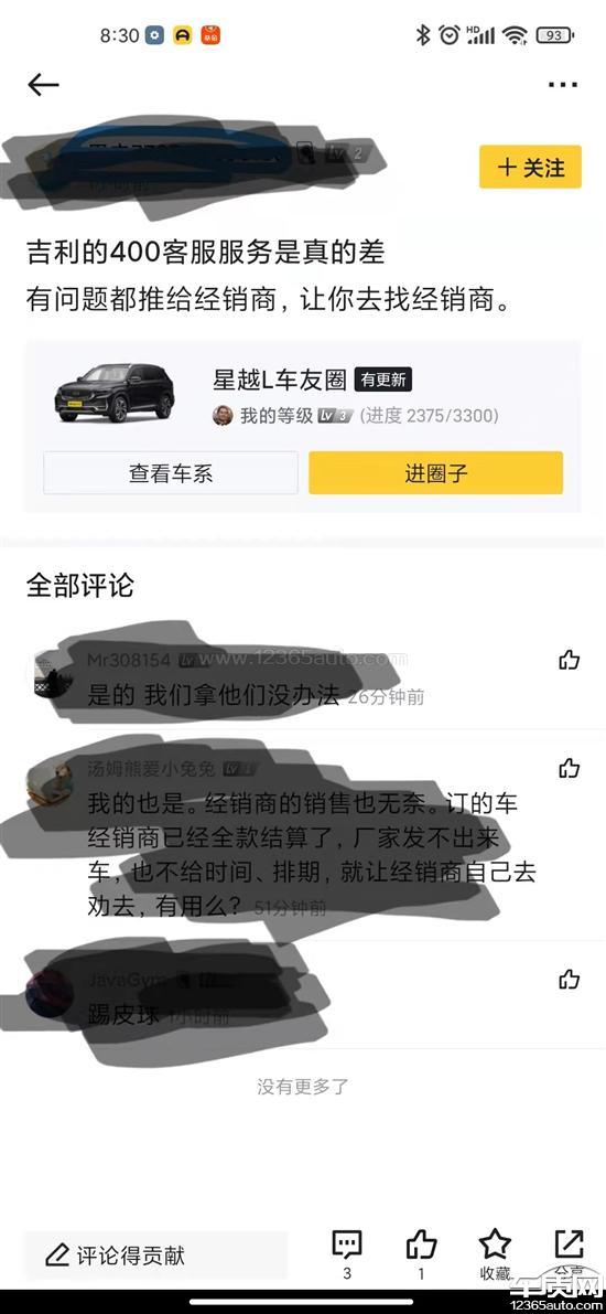 吉利汽车厂家回复:您的信息我们已经收到,将尽快协调相关4S店与您核实处理,厂家也将持续关注后续处理情况。感谢您的支持与谅解,如有疑问欢迎您致电吉利汽车客户服务热线:400-886-9888。