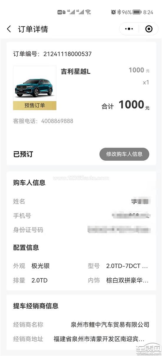 吉利星越L订车被无限拖延交车要求改配置2021-10-07车型:2021款 2.0TD DCT EVO 两驱 旗舰型